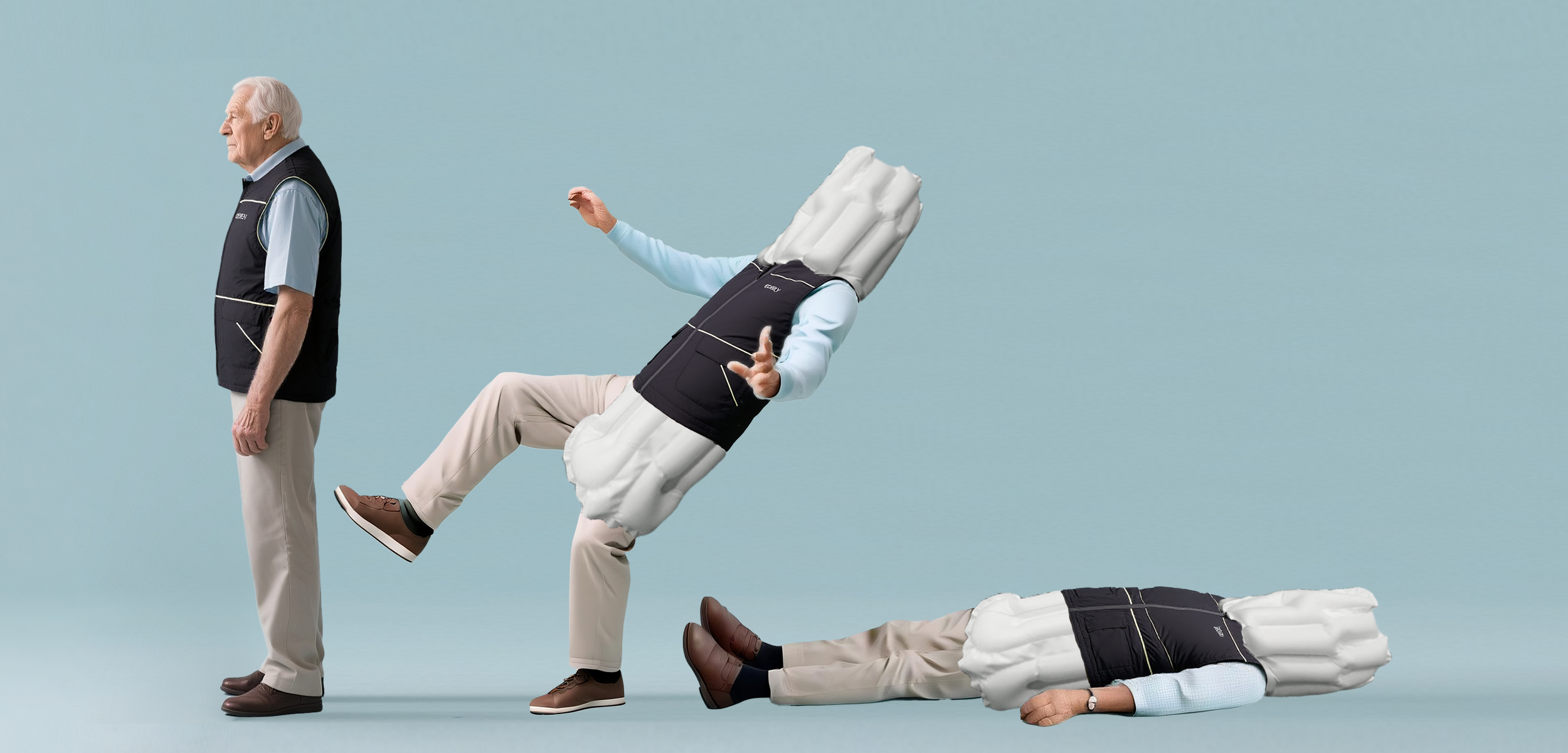 From a rainy ICU to your porch: 90 ms air-vest that turns “I fell” into “I’m fine” for every silver-haired rebel still out there.